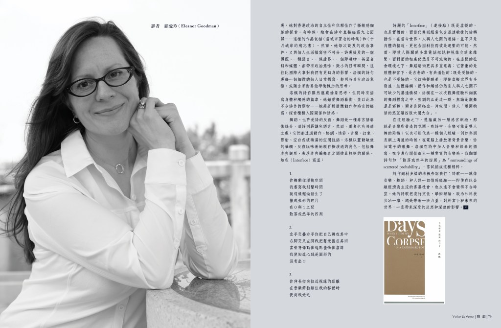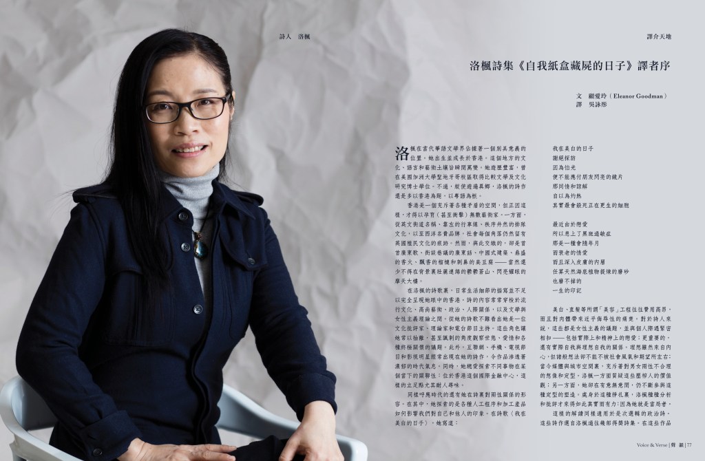 - 顧愛玲〈洛楓詩集《自我紙盒藏屍的日子》譯者序〉(吳詠彤譯)