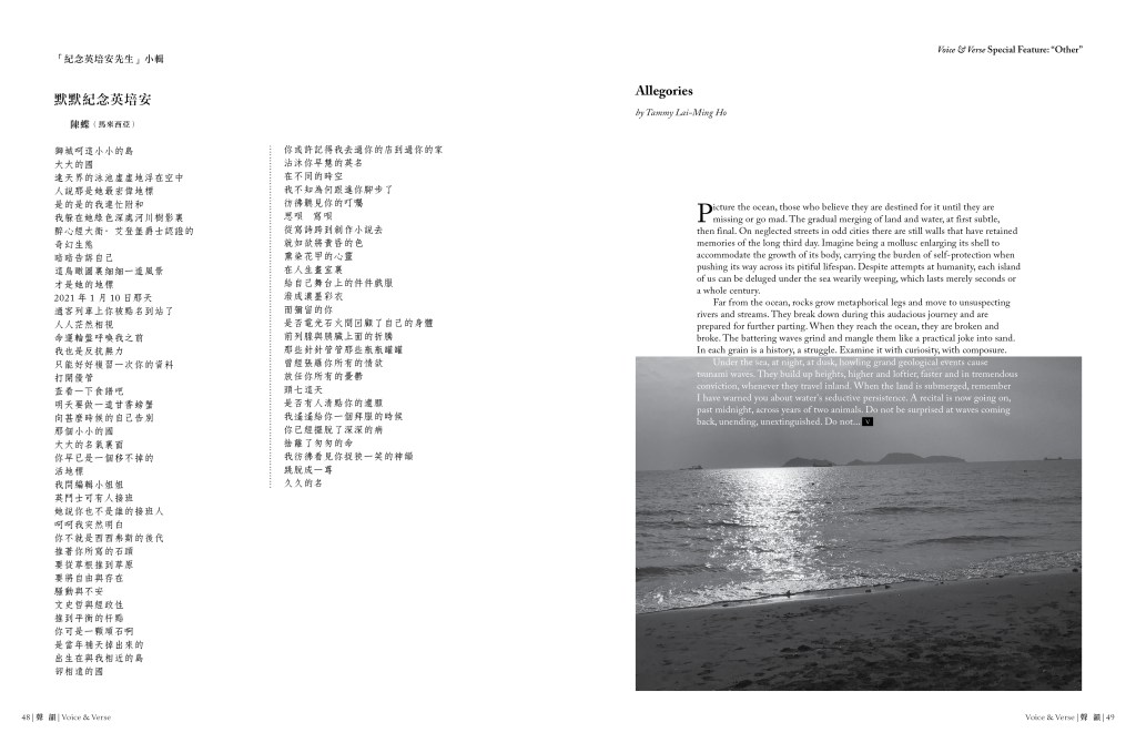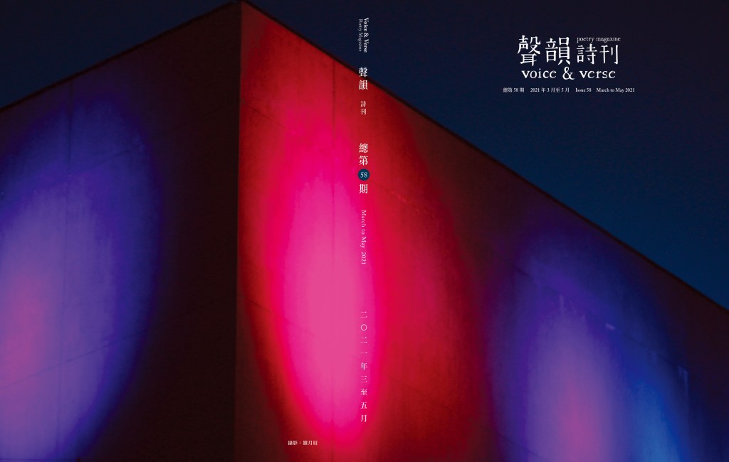 雜誌 MAGAZINE第58期 Issue 58 by 聲韻詩刊 Voice & Verse Poetry MagazineMay 6, 2021August 6, 2021 Special Feature “Other” | 澳門專欄「別有天新年詩會小輯」|「紀念英培安先生」小輯 | Sophia de Mello Breyner Andresen 詩十首 | 疫世記遊 目錄 TOC下載 Download Special Feature “Other”澳門專欄「別有天新年詩會小輯」夏簷譯、洋小漫畫:Sophia de Mello Breyner Andresen 詩十首「紀念英培安先生」小輯詩人訪問:李浩榮詩文對讀:鄧以楷疫世記遊:郭婷、黎愷盈、林麗珊、鄭羨曦、張靜怡、林樂怡、顧珮玟讀音:羅樂敏、羅月眉、璇筠、梁山丹、凡人 預覽 Preview Share this: Click to share on Facebook (Opens in new window) Facebook Click to share on X (Opens in new window) X Click to share on WhatsApp (Opens in new window) WhatsApp Click to email a link to a friend (Opens in new window) Email Like Loading... Related