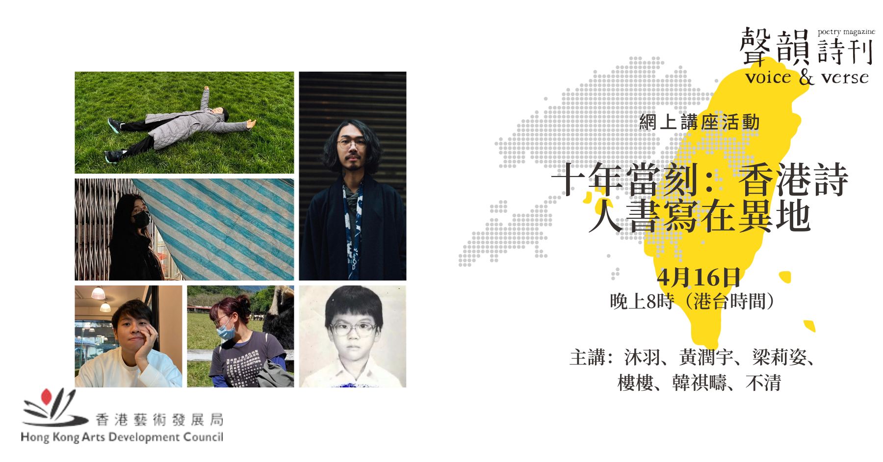《聲韻詩刊》十年,不知不覺紀錄了十年港事動盪,香港文學風景也有很大的變遷。當年在香港共同詩聚的詩人,今天由於不同原因而離散海外,隨居住時長,生活環境潮潮走遠。地區相異下,他們如何看待自己作為香港作家的身份?在地寫作與異地書寫又有甚麼差別?香港詩圈又能如何維繫?本次活動我們請來六位身處異地的香港作家,以網絡克服時差,再次聚首一堂,談詩,談生活,談香港。