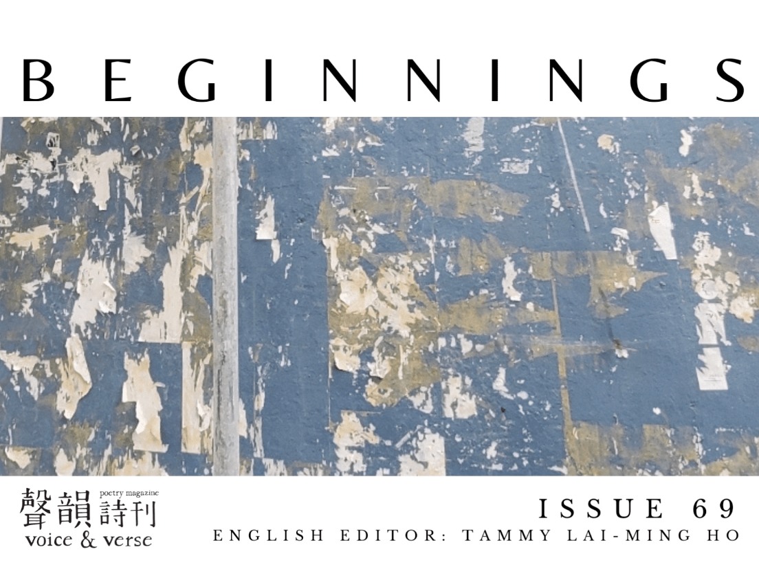 Voice & Verse Poetry Magazine 聲韻詩刊 is a Hong Kong-based print bilingual (Chinese and English) poetry publication distributed by The Chinese University of Hong Kong Press. We have previously published English-language sections on, among other topics, “Food”, “Ecopoetry”, “Estrangement”, “Emergency”, “Bullet”, “Virus”, “Masks”, “Home”, “Distance”, “Other”, “Mirror”, “Boar”, “Wall”, “Curel Spring”, and most recently, “Departures”.