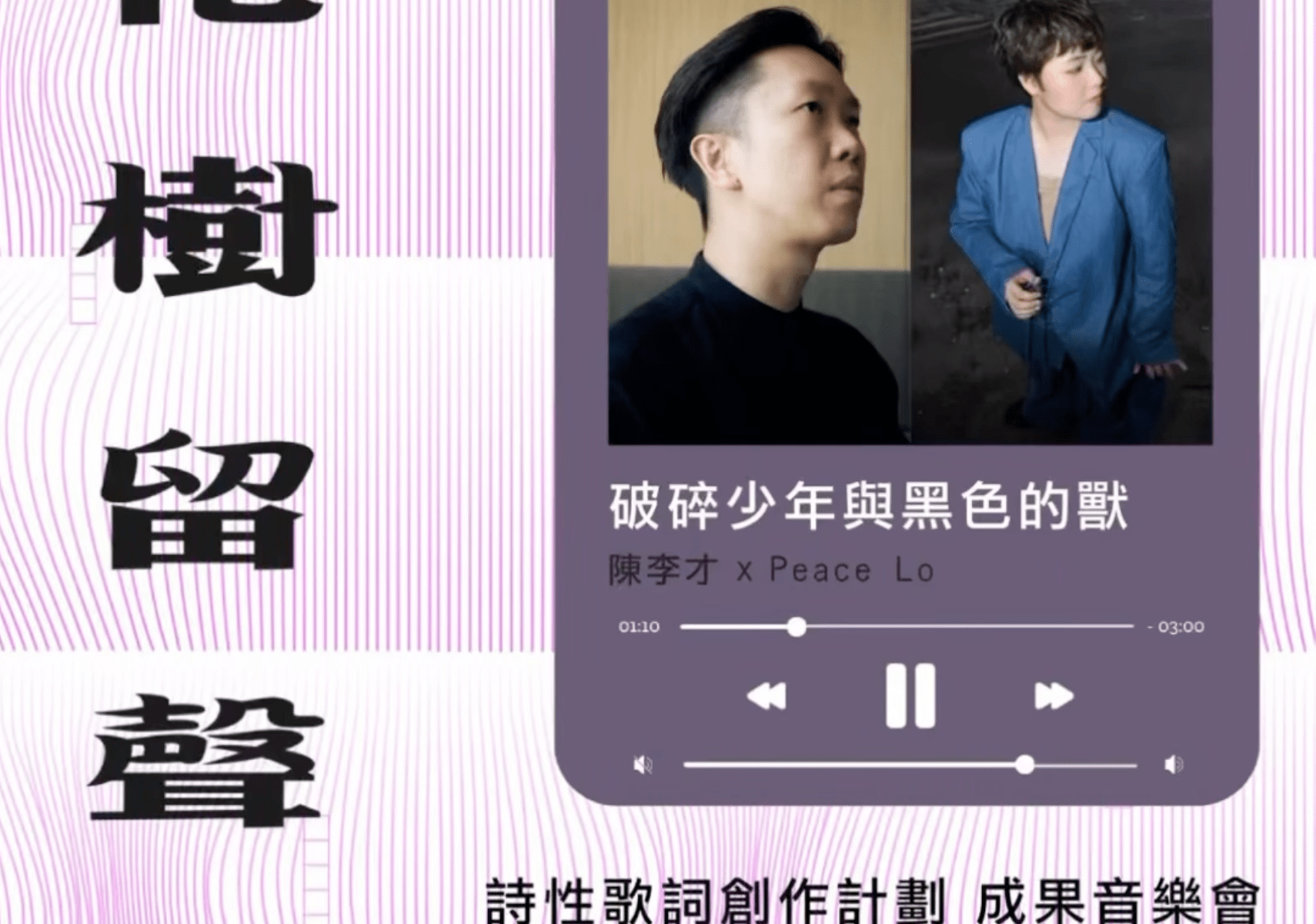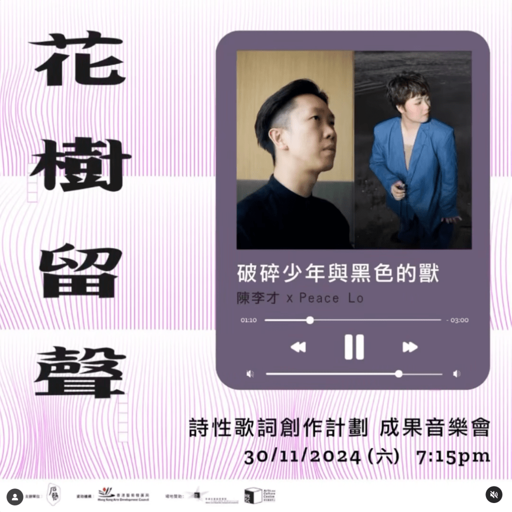 入場前,讓我們先試聽詩人陳李才 @raychanlc、音樂人 Peace Lo @llkpeace 分別為馬覺寫詞及寫曲的《破碎少年與黑色的獸》。